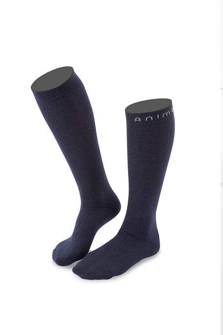 - Ridestrømper med animo-logo på toppkanten av sokken.