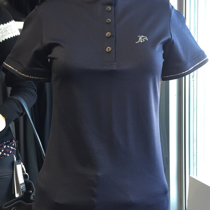 - Stevneskjorte med pene blingdetaljer langs kantene på ermene og kragen, samt på knappene.