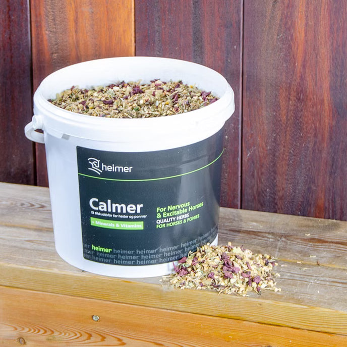 Calmer fra Heimer inneholder naturlige urter, vitaminer og mineraler og har en beroliggende effekt for nervøse og hissige hester.