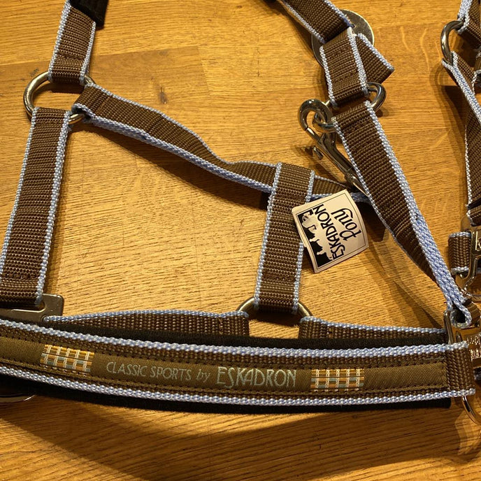- Brun med blå kanter, rålekker fargekombo.