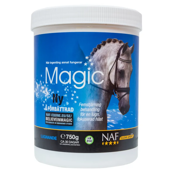 - Magic er mer enn bare magnesium; den inneholder også en blanding av urter på grunn av deres tradisjonelle bruk for økt selvtillit og konsentrasjon. Den unike blandingen av magnesium og urter støtter opp om at Magic kan få hesten til å takle det som kreves av den, rolig og selvsikkert.
