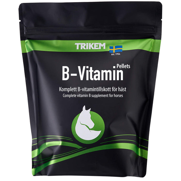 Vitamin B fra Trikem er et tilskuddsfôr til hest, som egner seg spesielt godt til fôring; skifte av fôr, skifte av miljø, hard trening, pelsfelling eller pelssetting. Hesten produserer i stor grad B-vitaminer selv, men i de ovennevnte situasjonene kan behovet for B-vitaminer øke, og hesten kan dermed trenge tilskudd.
